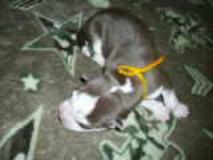 Mya had her 2nd litter on 6/24/10. There are 5 females and 4 males. The dam is a white dual...