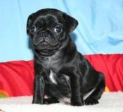Black Male Pug. Both Parents on premises.Already has 2 vaccinations, de wormed, comes with akc...