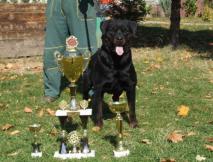 Female Rottweiler paired candidate for an international champion. Her titles are 2xCAC and CACIB....